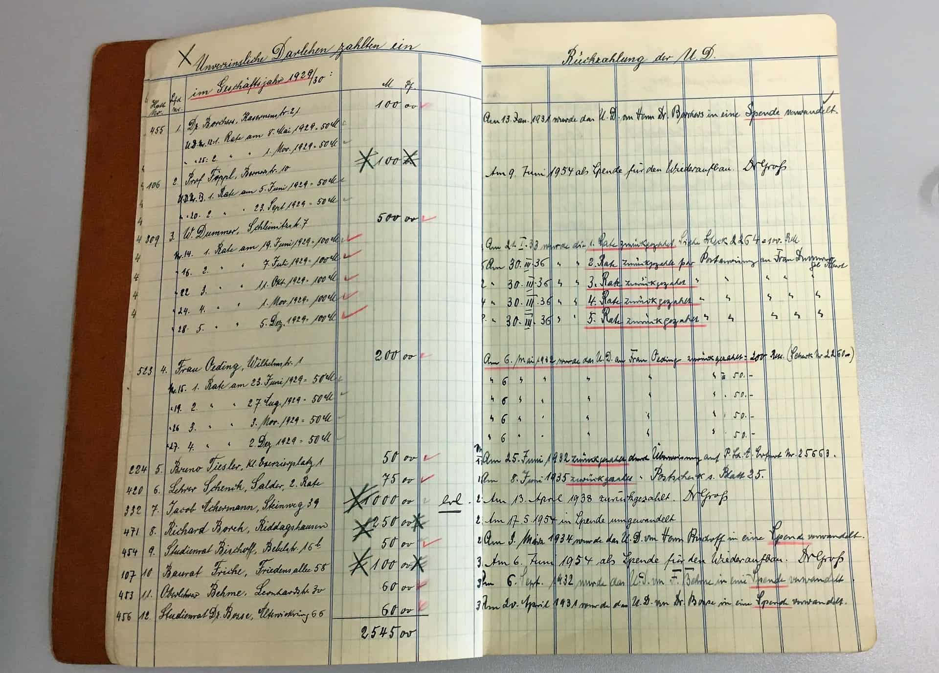 Zu allererst ist der großartige Schullauf zu nennen, an dem sich 800 Schüler beteiligten und Runde für Runde Geld erliefen. Dazu kamen die Förderung aus dem Europäischen Fonds für regionale Entwicklung (120.000 Euro) und viele hundert Spender, die zum Beispiel einen Quadratmeter neuen Dachs für 120 Euro erwerben konnten. Gefördert wird die Sanierung auch von der Richard Borek Stiftung. Zu den ersten Spendern 1928 zählte übrigens bereits schon ein Richard Borek, es war der Gründer der heutigen Richard Borek Unternehmensgruppe. Die ursprünglich als zinsloses Darlehn gedachten 250 Euro wurden am 17. Mai 1954 in eine Spende umgewandelt.