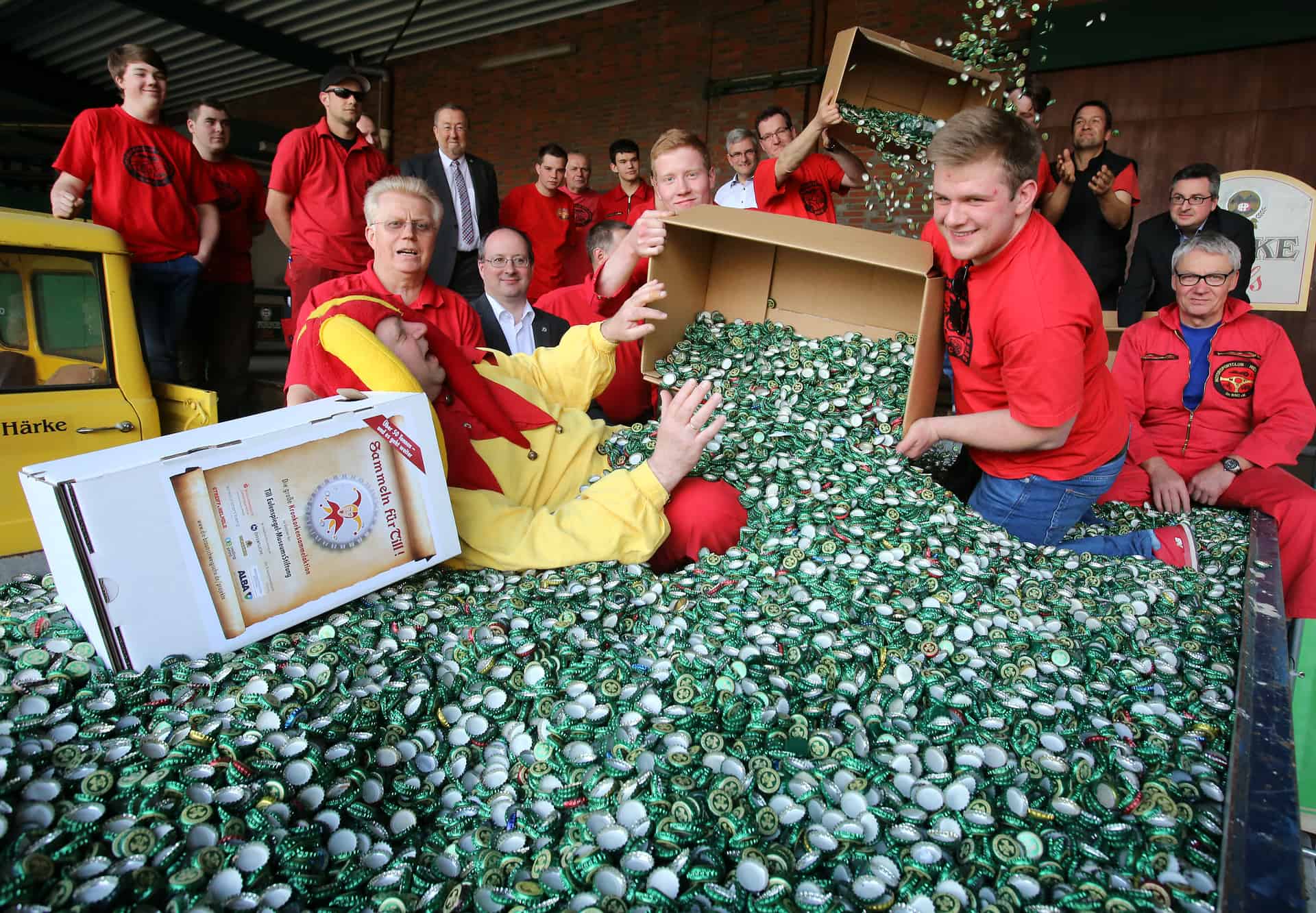 Getreu dem neuen Ausstellungsmotto „Überraschen, irritieren, widersprechen“ geht das Museum auch bei der Suche nach Fördergeldern und Spenden überraschende Wege. Bereits im August 2013 startete die Till Eulenspiegel-MuseumsStiftung gemeinsam mit der Braunschweigischen Stiftung die Kronkorken-Sammelaktion „Sammeln für Till“. Mehr als 30 Millionen Kronkorken sind bisher zusammengekommen, der Verkaufserlös kommt vollständig dem Eulenspiegel-Museum zugute. Rund 2,2 Millionen der kleinen Flaschenverschlüsse hat nun die Peiner Traditionsbrauerei Härke dem Museum übergeben. Ulrich Meister, Geschäftsführer der Braumanufaktur, hatte seine Kunden seit November 2016 zum Sammeln aufgerufen, sie konnten die Kronkorken gegen verschiedene Prämien einlösen. „Wir unterstützen damit regionale Kultur – und die Umwelt“, freut er sich über den Erfolg.