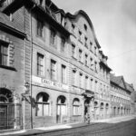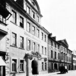 Das geschlos­senste Ensemble von für Messe­zwecke ausge­bauter Häuser wurde an der Breiten Straße geschaffen. Den Vorgang würde man heute als „Bauen im Bestand“ bezeichnen. Die statt­li­chen und oft noch mittel­al­ter­li­chen Kaufmanns­häuser erhielten im Erdge­schoss breite Bogen­öff­nungen und Räumlich­keiten, die an auswär­tige Messe­händler vermietet wurden. Die charak­te­ris­ti­schen Bögen sind als Messge­wölbe in die Bauge­schichte der Löwen­stadt einge­gangen. Außer den Messe­häu­sern etablierten sich an der Breiten Straße auch Gasthäuser wie das Röncken­dorff­sche Weinhaus (Breite Straße 18, Hotel d’Angle­terre) und das Kaffee­haus Wegener (Haus Nr. 20). Darüber hinaus siedelten sich auch Hofbeamte an, die ihrem Status entspre­chend als Bauherren auftraten.