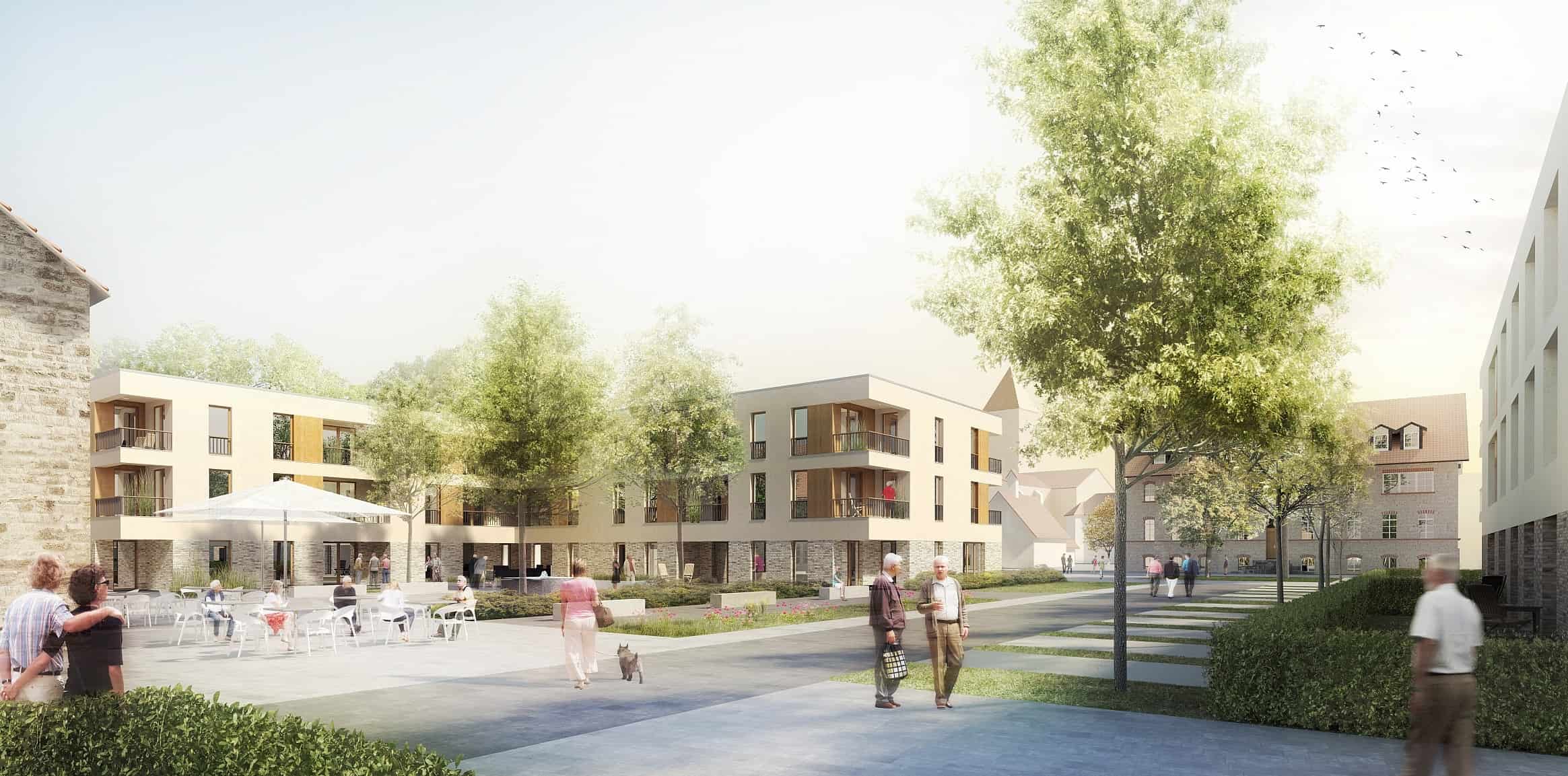 „Zielset­zung ist es, für Menschen mit unter­schied­lichsten Hilfe­be­darfen ein Umfeld mit zeitge­mäßen Lebens­räumen und gleich­zeitig exzel­lente Bedin­gungen für moderne Sozial­ar­beit zu schaffen. Die Attrak­ti­vität eines alltäg­li­chen Zusam­men­le­bens von Menschen aller Alters­stufen soll Isolation überwinden. Die vielfäl­tige Wieder­be­le­bung des Quartier St. Leonhard mit der histo­risch veran­kerten diako­ni­schen Ausrich­tung greift die Tradition christ­li­cher Nächs­ten­liebe in einem Konzept des unter­stüt­zenden Mitein­an­ders aktua­li­siert wieder auf“, kommen­tiert Pastor Rüdiger Becker, Direktor der Evange­li­schen Stiftung Neuerke­rode, die Planungen für die künftigen Mieter. Die Nähe zum Kranken­haus Marien­stift und zum Alten- und Senio­ren­heim Bethanien wird dabei als zusätz­lich  förder­lich angesehen.