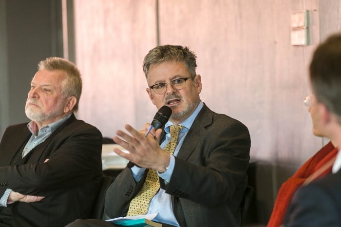 2014: Das Interesse war riesengroß, nicht einen freien Sitzplatz gab es in der Aula des Hauses der Wissenschaft in Braunschweig. Rund 200 Zuhörer kamen am 12. Oktober, um im Rahmen des von der Lessing-Akademie e.V. und der Stiftung STIFTUNG NORD/LB • ÖFFENTLICHE gemeinsam vergebenen Lessing-Preises für Kritik die lebhaft geführte Podiumsdiskussion der Erste-Weltkrieg-Experten Prof. Dr. Christopher Clark, Prof. Dr. Gerhard Hirschfeld und Dr. Franziska Augstein zu verfolgen. Als Aufhänger der Diskussion diente Clarks Welterfolg „Die Schlafwandler“ und die im Werk des Australiers aufgestellten Thesen zu den Ursachen, die zum Ausbruch des Ersten Weltkrieges führten.