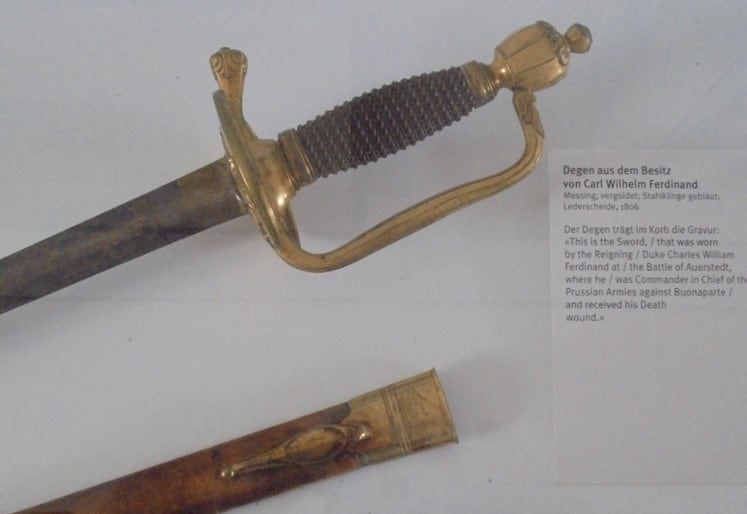 Das Museum Hassen­hausen ist ein echter Geheim­tipp. Obwohl rund 250 Kilometer von Braun­schweig entfernt, spiegelt das im Pfarrhaus einge­rich­tete Museum ein wichtiges Kapitel der Braun­schwei­gi­schen Landes­ge­schichte wider. Auf den Feldern Hassen­hau­sens tobte am 14. Oktober 1806 die Schlacht von Jena und Auerstedt. Karl Wilhelm Ferdinand, Braun­schweiger Herzog und Oberbe­fehls­haber der preußi­schen Truppen, zog sich an Ort und Stelle eine tödliche Verlet­zung zu. Zu sehen sind originale Fundstücke der Schlacht. Auch der Degen, den Karl Wilhelm Ferdinand in der Schlacht trug, ist als Leihgabe des Braun­schwei­gi­schen Landes­mu­seums zur Schau gestellt.