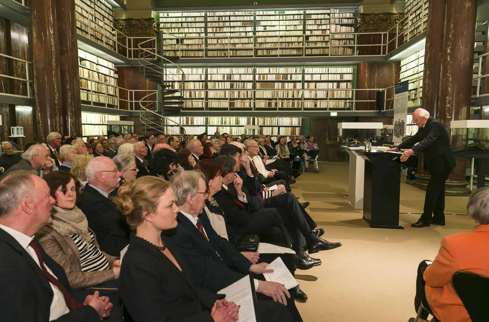 Von Lucke sorgte in seiner Dankesrede für ein Raunen der Zuhörer in der altehrwürdigen Augusteerhalle der Herzog August Bibliothek, als er berichtete, dass sich einer seiner Ur-Ur-Ur-Großväter vor mehr als 200 Jahren persönlich mit Lessing getroffen habe.