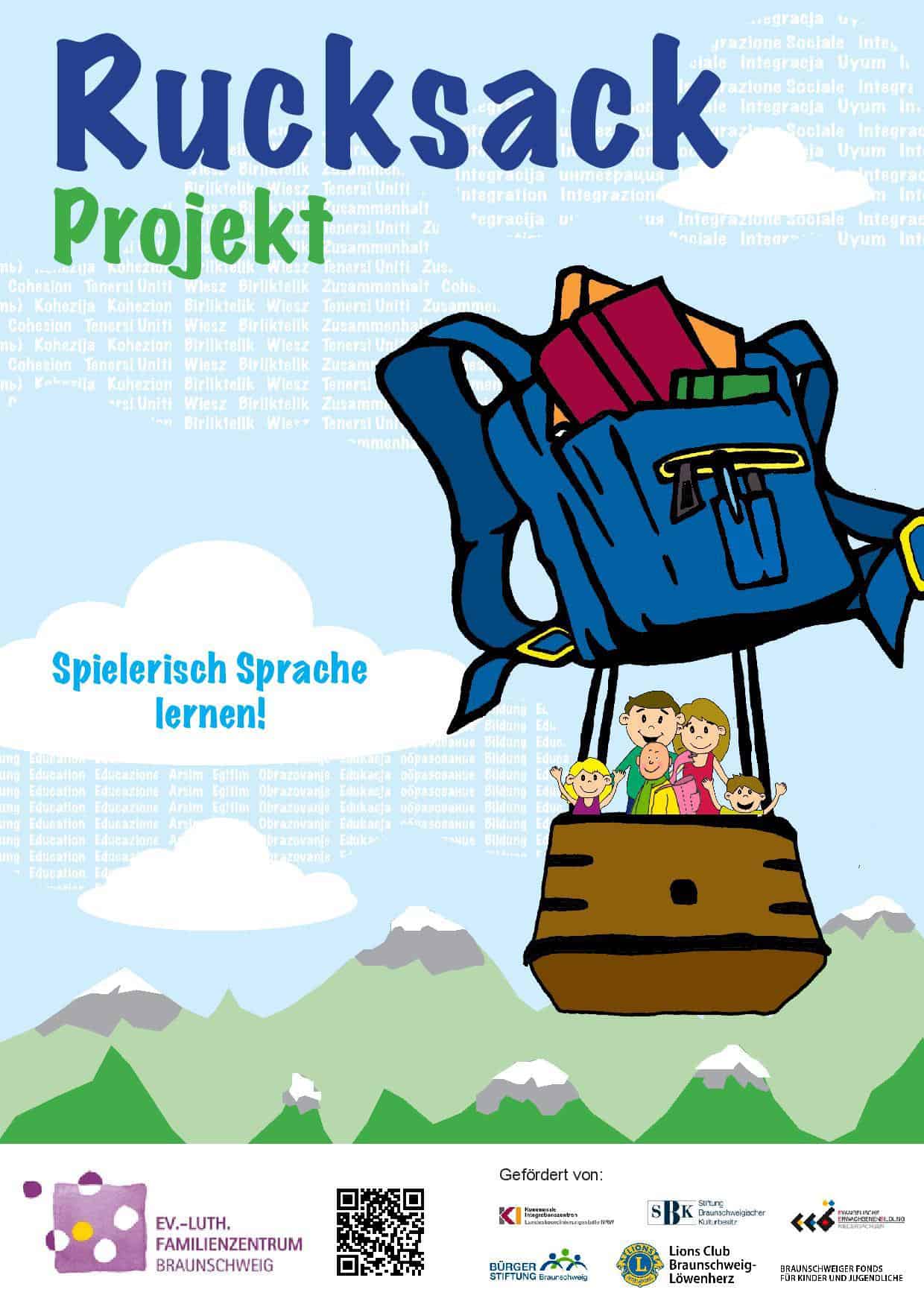 Gefördert wird „Rucksack“ beim Ev.-luth. Familienzentrum Braunschweig durch die Stiftung Braunschweigischer Kulturbesitz, die Bürgerstiftung Braunschweig, den Braunschweiger Fonds für Kinder und Jugendliche, den Lions Club Braunschweig-Löwenherz und die Evangelische Erwachsenenbildung (EEB) – Arbeitsgemeinschaft Braunschweig.