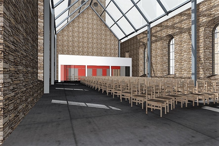 Ein beheizbarer Raum, der in die Ruine eingebaut wird, kann als Versammlungsort für die Gruppen der Gemeinde genutzt werden, für Veranstaltungen und auch als Winterkirche. Das Konzept der „Cabrio-Kirche“, wie die Organisatoren es mit einem Augenzwinkern nennen, wurde gemeinsam mit der Kirchengemeinde Hüttenrode entwickelt. „Das einzige, was wiederaufgebaut werden soll, ist die barocke Turmhaube mit Kugel und Fahne“, erklärt Flügel. Die markante Haube prägte das Bild des Dorfes und war schon von weitem eine unverwechselbare Landmarke.