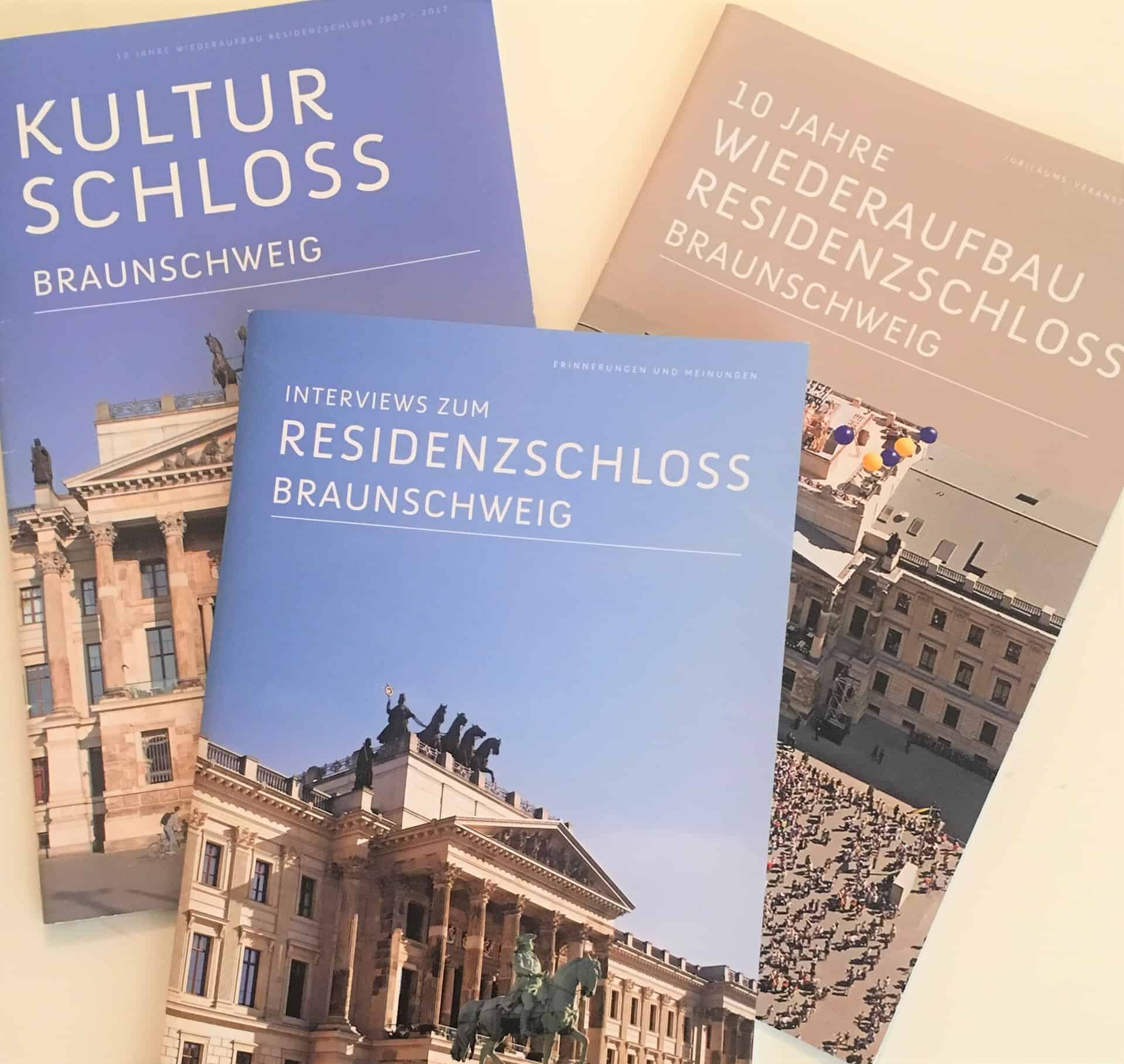 Der jetzt herausgegebenen Broschüre gingen die Magazine „Kulturschloss Braunschweig – 10 Jahre Wiederaufbau Residenzschloss 2007 – 2017“ und „10 Jahre Wiederaufbau Residenzschloss Braunschweig – Jubiläums-Veranstaltungen“ voraus. Die Trilogie ist ein informativer Abriss über das herausragende und am extremsten diskutierte Thema der Nachkriegsgeschichte in Braunschweig. Die drei Hefte sind im Schlossmuseum und vom 12. August an auch im Ladengeschäft „Borek am Dom“ für eine Schutzgebühr von jeweils 1 Euro erhältlich.