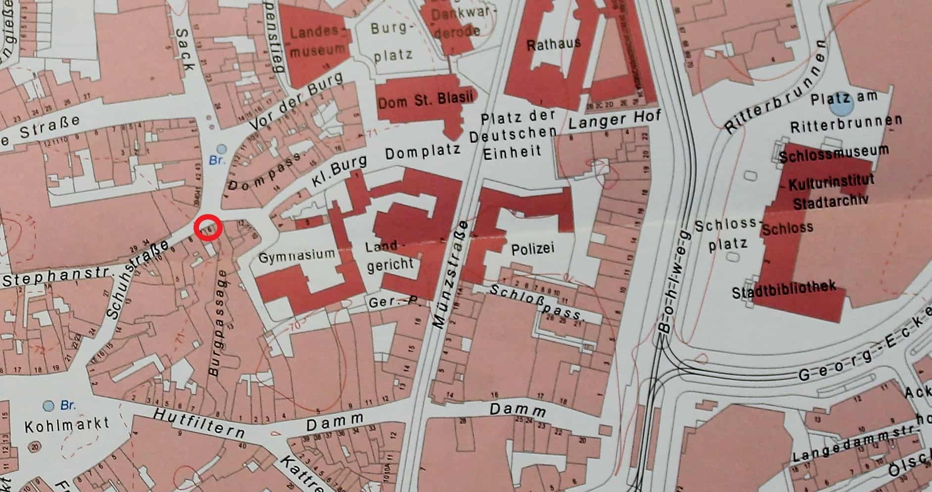 Ein Blick auf die Schadenskarte von Braunschweig aus dem Jahr 1945 zeigt, dass das Quartier zwischen Schuhstraße und Hutfiltern sowie zwischen Vor der Burg und Kleine Burg praktisch komplett vom Bombenhagel der Royal Air Force verschont geblieben war, obwohl die Stadt zu 90 Prozent in Schutt und Asche lag. Faktisch wäre dieses Areal prädestiniert gewesen für eine weitere beeindruckende Traditionsinsel neben Magniviertel, Michaelisviertel, Aegidienviertel, Burgplatz und Altstadtmarkt. Doch die Stadtväter sahen das seinerzeit anders. Und zu allem Überfluss geht die späte Zerstörung des alten Braunschweigs an dieser Stelle immer weiter.