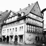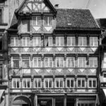 Im Übrigen zeigten sich die langen – und schnurgeraden – Straßenfluchten ursprünglich mit einer fast lückenlosen Fachwerkbebauung. Diese wurde zuletzt jedoch durch die deutlich höhere Gründerzeitbebauung mit ihren kahlen Brandwänden unterbrochen. Eine Preziose unter den Fachwerkhäusern war das an der Nordseite des Steinweges gelegene Haus Nr. 16. Das 1665 errichtete Bauwerk verkörperte als eines der letzten Beispiele den klassischen Typ des Kaufmannshauses mit hoher Diele, Dielentor sowie Zwischengeschoss und vorkragenden Speicherstöcken. Über der Dachtraufe saß ein Zwerchhaus mit Windevorrichtung und Luke für den Warenaufzug. Die Front war mit reichen Schnitzereien der Spätrenaissance verziert. Das Gebäude datierte in einer tiefen Rezession der Baukonjunktur in der Löwenstadt: Waren noch in den Jahren vor dem Westfälischen Frieden (1648) und damit in der Endphase des Dreißigjährigen Krieges zahlreiche Bürgerhäuser entstanden, lassen sich für die 1650er und 60er Jahre kaum Neubauten identifizieren. 1657 hatte zudem eine verheerende Pestepidemie gewütet. Und 1671 endete mit der Eroberung durch herzogliche Truppen das lange Zeitalter der stadtbürgerlichen Freiheiten. Daher stand Steinweg 16 an einer Scheidemarke der Stadtgeschichte.