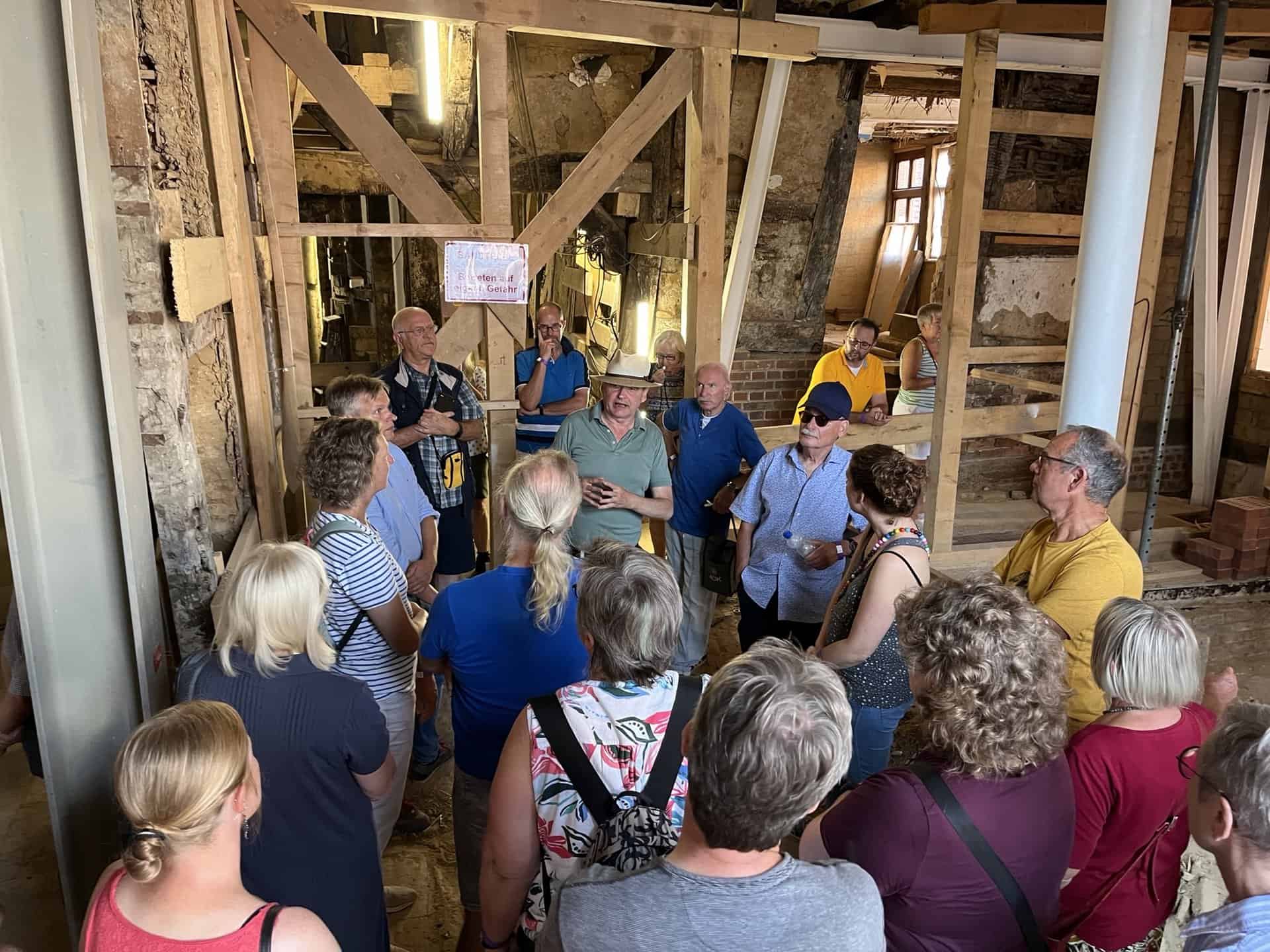Alle sechs Führungen mit jeweils zugelassenen 25 Personen waren im Vorfeld binnen weniger Stunden ausgebucht, das Interesse für diesen exponierten Ort der Traditionsinsel war enorm. Viele Braunschweigerinnen und Braunschweiger nutzten zudem die Gelegenheit, sich in einem Ausstellungsbereich auf Tafeln, Plänen und anhand eines Modells zu informieren. Rede und Antwort standen neben Elmar Arnhold Architekt Thomas Adler (Delta Bauplanung), die beiden Restauratorinnen Carla Leupold-Belter und Julia Köhler, die jeweils besondere Teilprojekte betreuen, sowie Klaus Hornung und Sven Storbeck vom Referat Stadtbild und Denkmalpflege der Stadt Braunschweig.