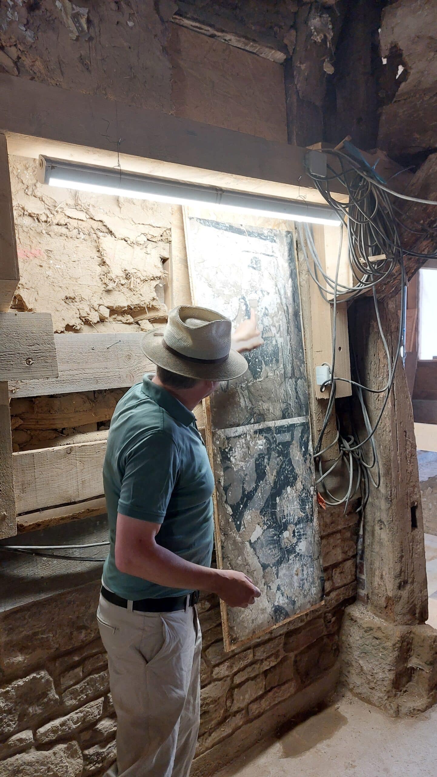 Erstmals wurde am Tag des offenen Denkmals öffentlich über ein im Inneren freigelegtes Gemälde berichtet. Es war im Zuge der Arbeiten entdeckt worden. Es wird die Aufgabe von Carla Leupold-Belter werden, es fachgerecht zu restaurieren. Wegen des noch laufenden Innenbaus ist das Gemälde derzeit noch von einem Holzverschlag geschützt. Für die Führungen wurde jedoch ein großformatiges Foto an der Stelle angebracht, das den gegenwärtigen Zustand zeigt.