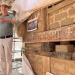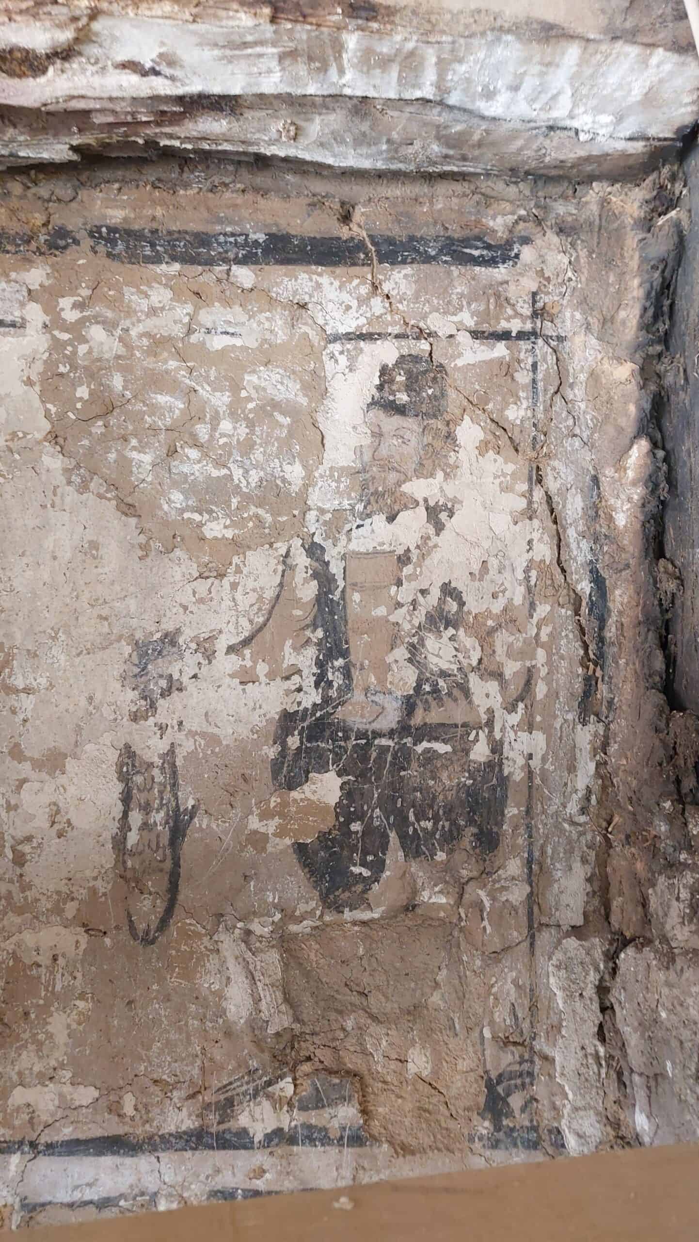 „Zunächst war lediglich eine auf die Wand gemalte Blüte erkennbar gewesen, aber nach behutsamem Rückbau sämtlicher davor gemauerter Backsteine wurde schließlich das ganze Gemälde sichtbar. Es zeigt einen bärtigen Mann, der in der einen Hand einen Bierkrug und in der anderen Hand einen Fisch hält. Das könnte bedeuten, dass in dem Raum ehemals eine Art Gaststätte gewesen sein könnte“, erläutert Elmar Arnhold. Die Entstehungszeit des Gemäldes taxiert er um 1600.