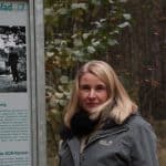Die Resonanz sei gut. Gruppen können Führungen buchen, aber die Stelen erklären sich selbst, so dass auch Einzelbesucher und Wanderer, die zufällig darauf stoßen, angesprochen werden. „Und“, verrät Frau Wipppich, „wir haben einen Geocache versteckt!“ Das locke viele Schatzsucher an, die begeistert seien von dem Angebot. Wer sich lieber etwas erzählen lässt als zu lesen und keine so kompetente Führerin wie ich dabei hat, kann sich im Internet oder über einen QR-Code einen Audiowalk herunterladen, den der Zeitzonen-Verein des Historischen Seminars der TU Braunschweig erstellt hat.