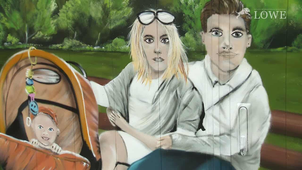 Video über das Entstehen der Drei-Generationen-Gruppe von Sebastian Meyer auf dem dunkelgrünen Verteilerkasten.
