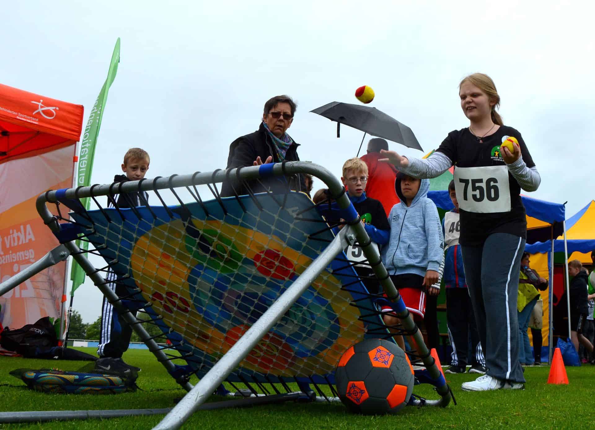 Auch Nässe und kühle Tempe­ra­turen konnten den jungen Menschen die gute Laune nicht verderben. Es galt, Diszi­plinen in den Bereichen Kraft, Schnel­lig­keit und Koordi­na­tion zu absol­vieren. Dazu gehörten etwa Sprint, Stand­weit­sprung sowie Weit- und Zielwurf. Die Zeiten und Weiten nahmen 58 Sport­ab­zei­chen­prüfer aus den Sport­ver­einen Salzgit­ters ab – denn die Schüler konnten im Zuge des Wettbe­werbs auch das Deutsche Sport­ab­zei­chen erwerben.