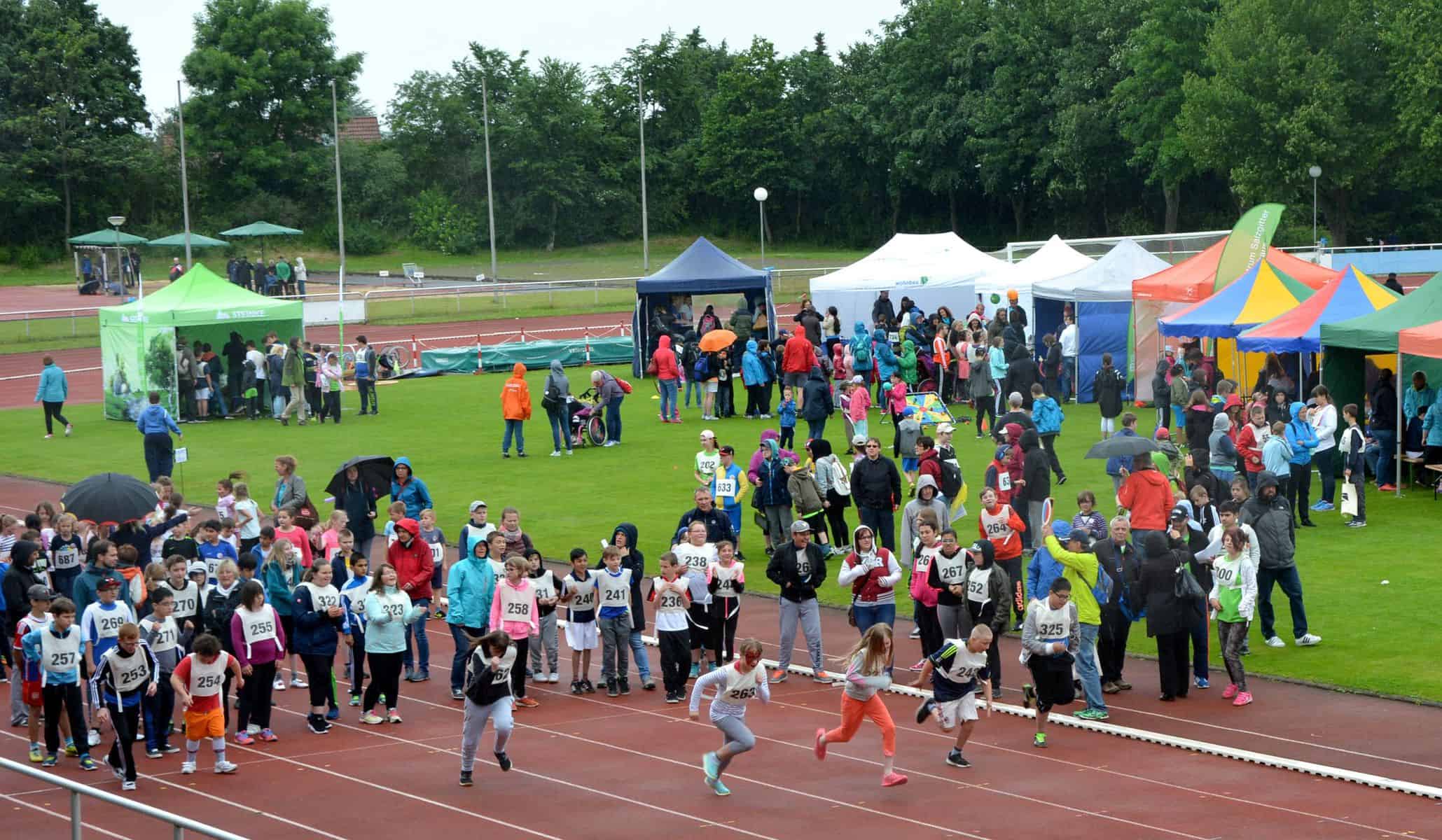 Neben den Prüfern und Schülern waren viele Betreuer und Helfer im Stadion unterwegs – insgesamt trugen gut 1300 Menschen als Aktive oder Ehren­amt­liche zum Gelingen des Tages bei.