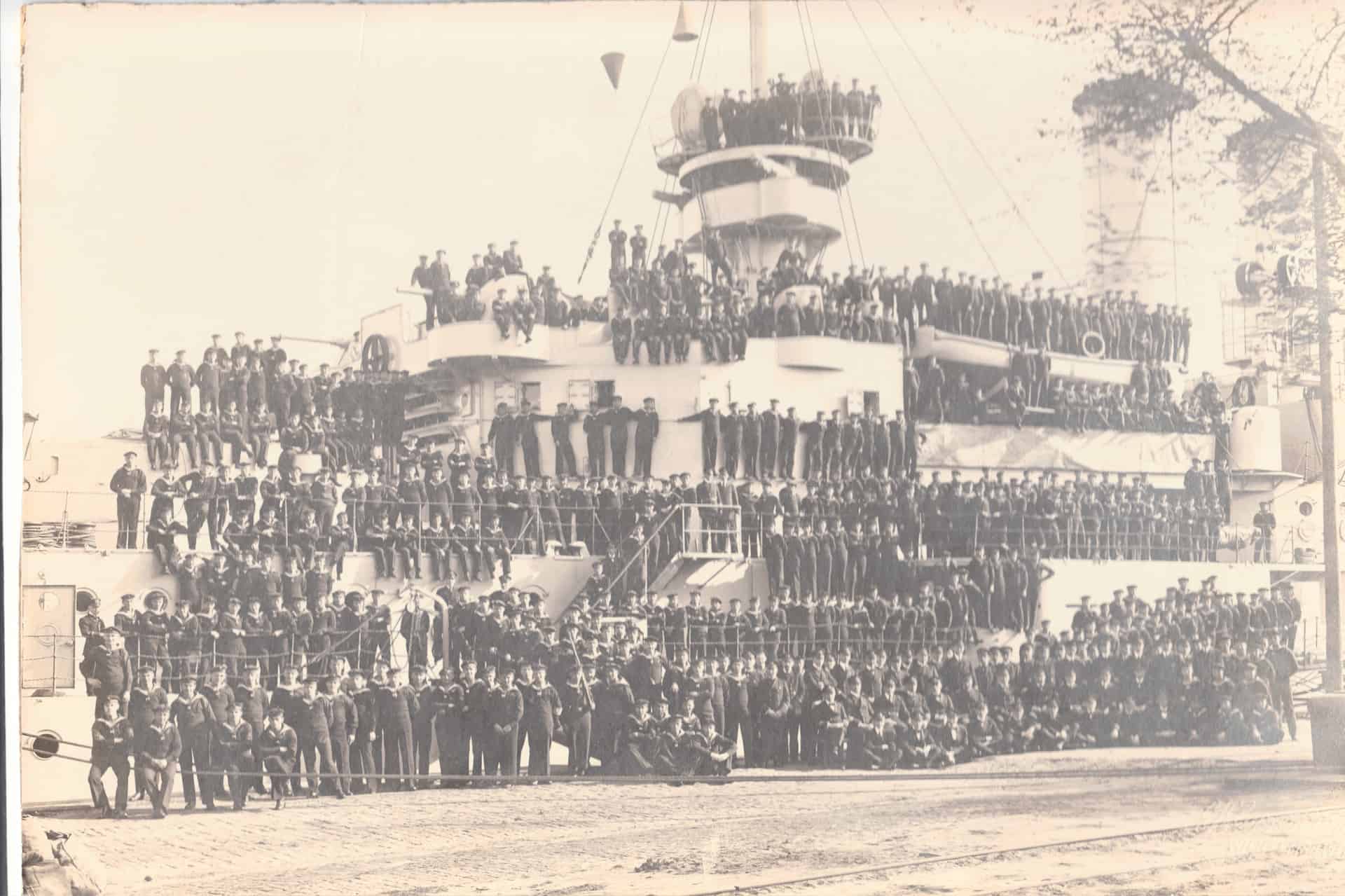 Das Linienschiff “Braunschweig” war 1904 bei der Germaniawerft in Kiel vom Stapel gelaufen und spielte im Seekrieg allerding keine große Rolle. Sie war 1914 im Wettlauf des Wettrüstens vor dem Krieg schon veraltetet. 1916 wurde das Schiff, das bis zu 750 Mann Besatzung hatte, aus dem Kriegsdienst genommen und lag danach in Kiel als Exerzier- und Wohnschiff vor Anker.
