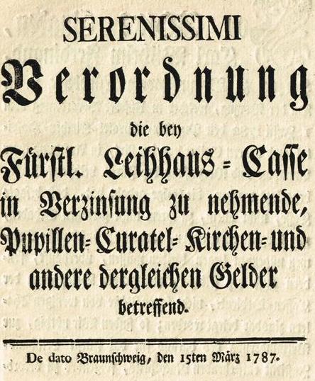 Nach 1765 entstanden im Herzogtum weitere Leihhäuser. Sie vereinigten sich 1784 mit dem Leihhaus in Holzminden. Erlasse zu den Zinsen, die auch aktualisiert werden, regelten den Geldverkehr im Herzogtum. Aus diesem Leihhaus wurde 1919 die Braunschweigische Staatsbank, 1969 die Norddeutsche Landesbank und 2014 schließlich die Braunschweigische Landessparkase.