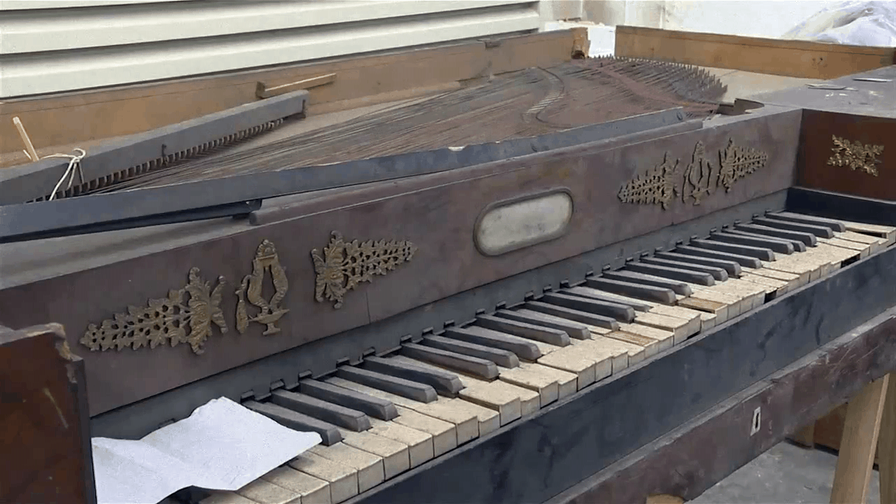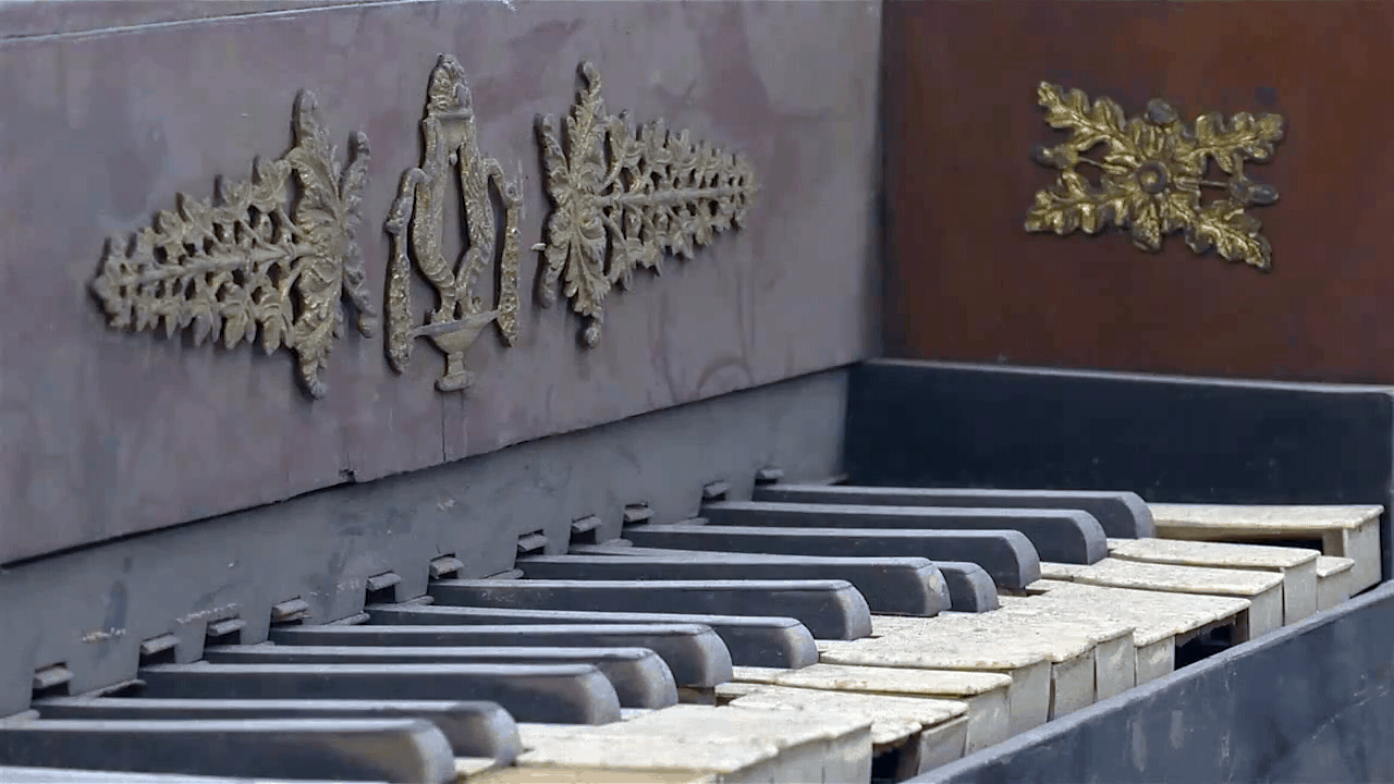 Jetzt sollen zunächst einige herausragende Sammlungsstücke exemplarisch restauriert werden. An Nummer eins steht der um 1830 erbaute Mahagoni Kielflügel Opus 2706 aus der Werkstatt des Conrad Graf in Wien. Sein Zustand wird so beschrieben: sehr schlecht, der Korpus ist verzogen, vier Rostbrüche im Holz, Schäden an der Politur; Notenpult, Beine, Lyra sind in Einzelteilen gesondert verwahrt. Das Klavier ließe sich durch restauratorische und konservatorische Maßnahmen wieder spielbar machen. Es wird eine Arbeitszeit von einem Jahr gerechnet. Kosten: ca. 100.000 Euro.