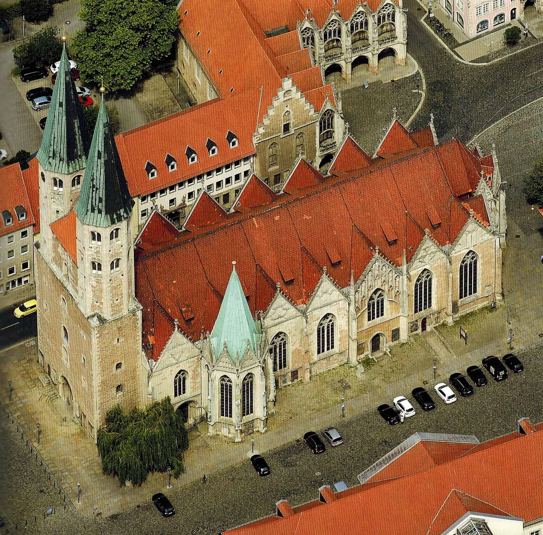 In den zahlreichen Sakralbauten, so schreibt Arnhold in seinem Buch, spiegele sich die Bedeutung Braunschweigs im Mittelalter wider. „Die Kirchen lassen einen Wettbewerb der verschiedenen Weichbilde erkennen, der sich besonders im Turmbau äußerte“, so Arnhold. Mit Dom, St. Magni, St. Aegidien, St. Ulrici, St. Martini, St. Jakob, St. Michaelis, St. Bartholomäus, St. Petri, St. Andreas, St. Katharinen und St. Nikolai besaß Braunschweig schon im 13. Jahrhundert eine erstaunlich hohe Zahl an Stadtkirchen. Vollständig zerstört wurde davon im zweiten Weltkrieg lediglich die Nikolaikirche. Die fünf als Weichbilde bezeichneten Teilstädte (Altstadt, Sack, Neustadt, Hagen und Altewiek) hatten nicht nur jeweils eigene Kirchen, sondern auch Rathäuser, von denen heute noch Altstadt- und Neustadtrathaus erhalten sind.