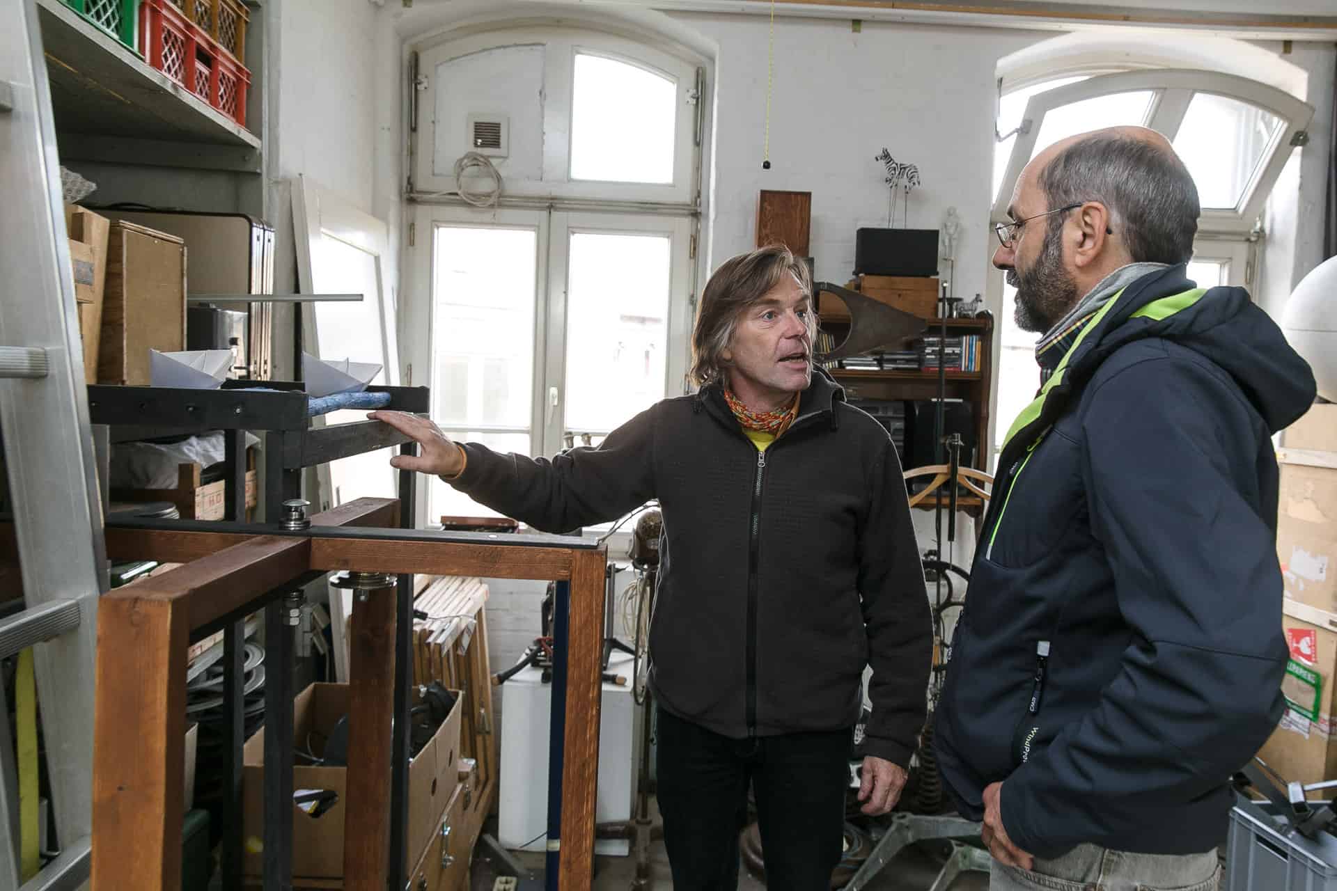 Für Hans Wesker ist, obwohl Künstler der ersten Stunde im Haus des Allgemeinen Konsumvereins, die Teilnahme an dem Kunstfest stets eher ein Angehen als eine liebgewonnene Tradition. „Diesen intimen Bereich zu öffnen, ist immer wieder ein Einbruch in meine Arbeitsprozesse. Ich muss mich überwinden“, erklärt der Klangkünstler unumwunden.