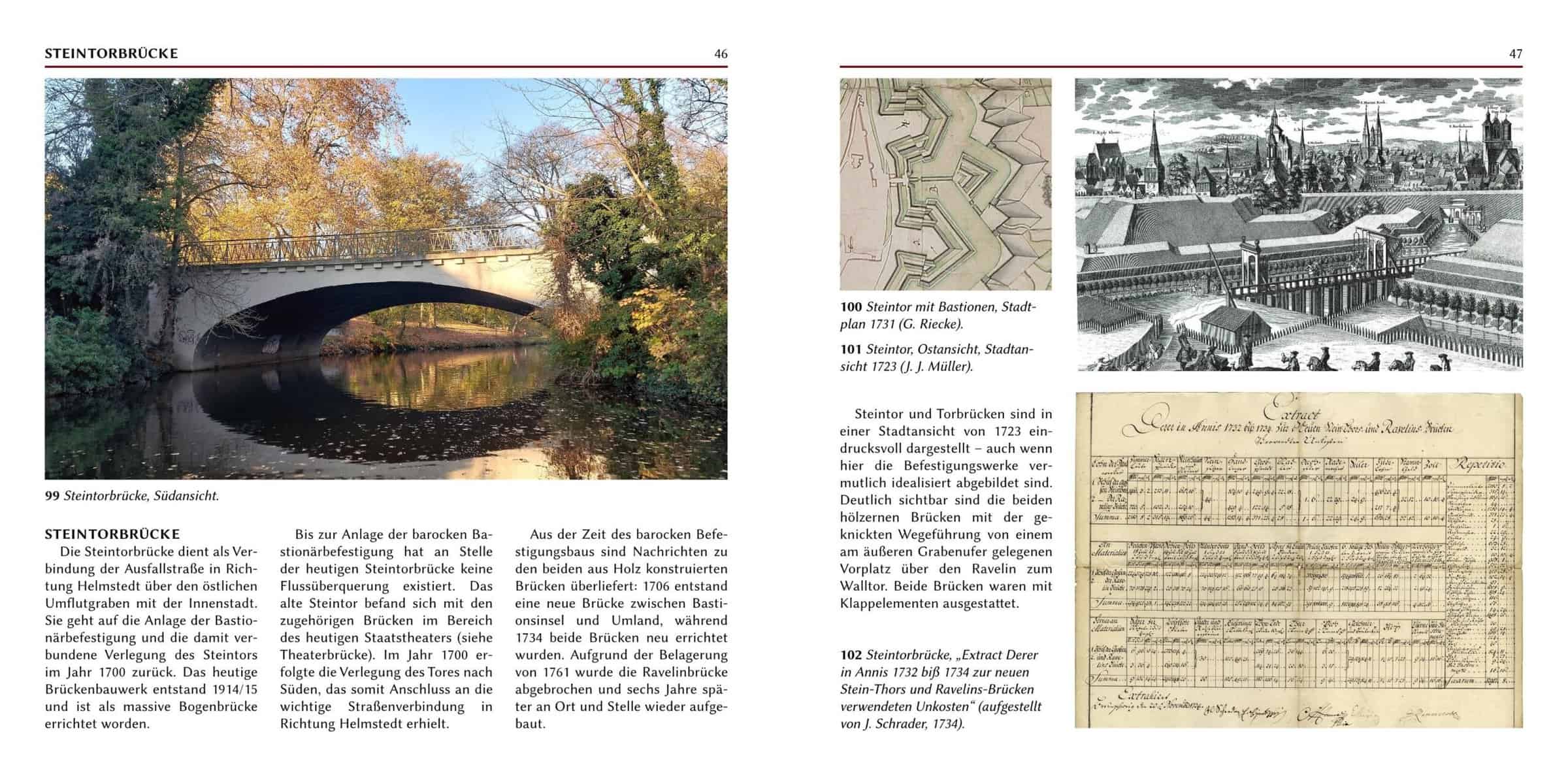 „Braunschweigs Brücken an den Oker-Umflutgräben“ ist deutlich umfassender geworden. „Es ist keine erweiterte Neuauflage, sondern tatsächlich ein neues Buch mit sehr viel mehr Informationen und vor allem historischen Abbildungen“, sagt Elmar Arnhold. Für die Dokumentation hatte er in den Beständen des städtischen Tiefbauamts, im Stadtarchiv und im Städtischen Museum Braunschweig, im Niedersächsischen Landesarchiv und in der Herzog August Bibliothek (beide Wolfenbüttel) sowie im Niedersächsischen Landesamt für Denkmalpflege (Hannover) umfangreiche Archivalien gesichtet. Zahlreiche Pläne, Grafiken und historische Fotografien wurden digital aufbereitet.