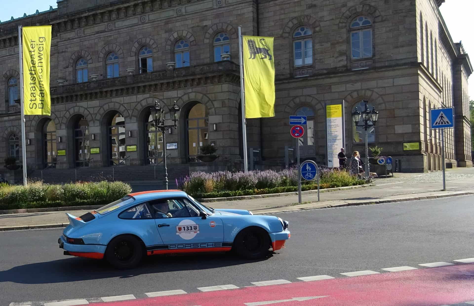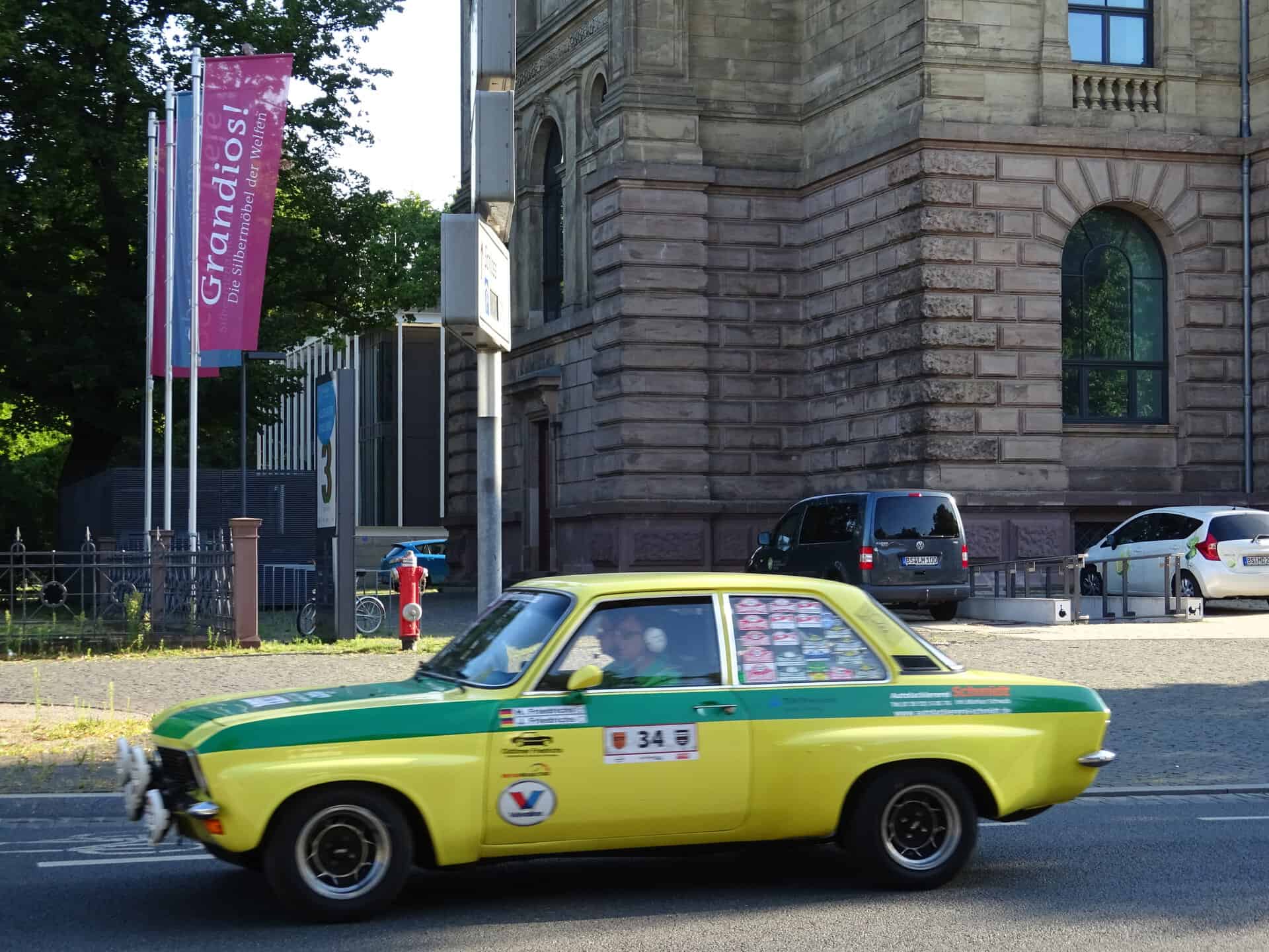 Mit der Olympia Rallye 1972 Revival 2022 von Kiel nach München machte ein „rollendes Automu­seum“ Station auf dem Braun­schweiger Schloss­platz. Früh morgens waren bereits viele Autofans gekommen um die 197 Teams der Oldtimer Rallye mit 44 verschie­denen Fahrzeug-Marken aus sechs Nationen und 175 unter­schied­li­chen Fahrzeug­typen zu begrüßen. Der Tross war aus Wolfsburg kommend über Kasta­ni­en­allee, Museums­straße und Georg-Eckert-Straße zum Schloss­platz gekommen und verließ ihn über den Ritter­brunnen, Steinweg und die Jaspe­r­allee Richtung Reitlingstal. Etappen­ziel war Paderborn. An der Strecke standen immer wieder Passanten und fotogra­fierten mit Begeis­te­rung die Fahrzeuge, deren Baujahr zwischen 1950 und 1990 lagen.