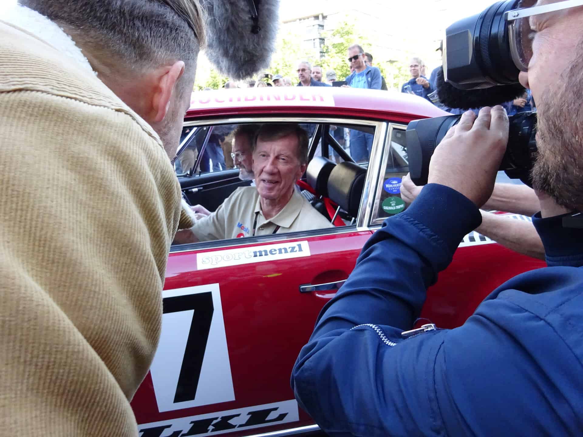 Der legendäre Rallye-Weltmeister Walter Röhrl kam im Porsche 911 S vorge­fahren und machte seinem Ruf als Sportidol alle Ehre.