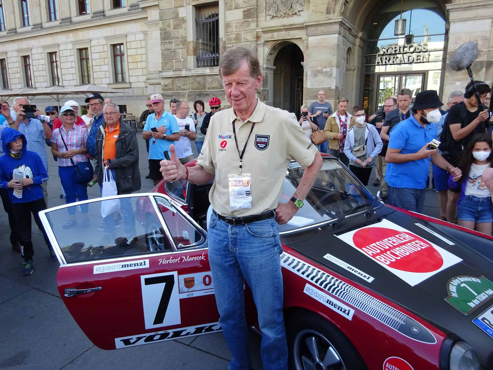 Zehn Teilnehmer, die 1972 bereits die legendäre Rallye als Rennen von Kiel nach München (3.371 Kilometer) gefahren waren, sind auch bei der gemäch­li­cheren Wieder­auf­lage über 2.252 Kilometer (kalku­lierter Schnitt 38 km/h) mit dabei. Einer von ihnen ist der zweima­lige Weltmeister (1980, 1982) und vierma­lige Rallye Monte Carlo-Sieger Walter Röhrl. Auf Braun­schweigs Schloss­platz fuhr er mit einem Porsche 911 S (Baujahr 1968).
