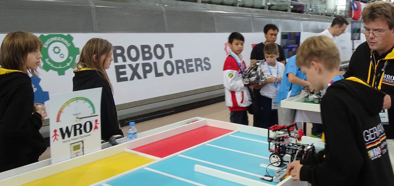 Weltweit ist die Aufgabenstellung gleich: In diesem Jahr stand die WRO-Saison, ein internationaler Roboterwettbewerb für Kinder und Jugendliche im Alter von acht bis 18 Jahren, unter dem Motto „Robot Explorers“. Dabei mussten die Tüftler einen Roboter entwickeln, der auf einem 2,5 Meter mal 1,3 Meter großen Spielfeld verschieden Aufgaben löst. Symbolisch wurde auf diesem Feld nach „Perlen“ getaucht. Für den Roboter gilt es u.a., Farben und Gegenstände zu erkennen und die Perlen – in Form von Tischtennisbällen – am richtigen Ort abzulegen. Gefragt ist ein hohes Maß an Schnelligkeit und Präzision.