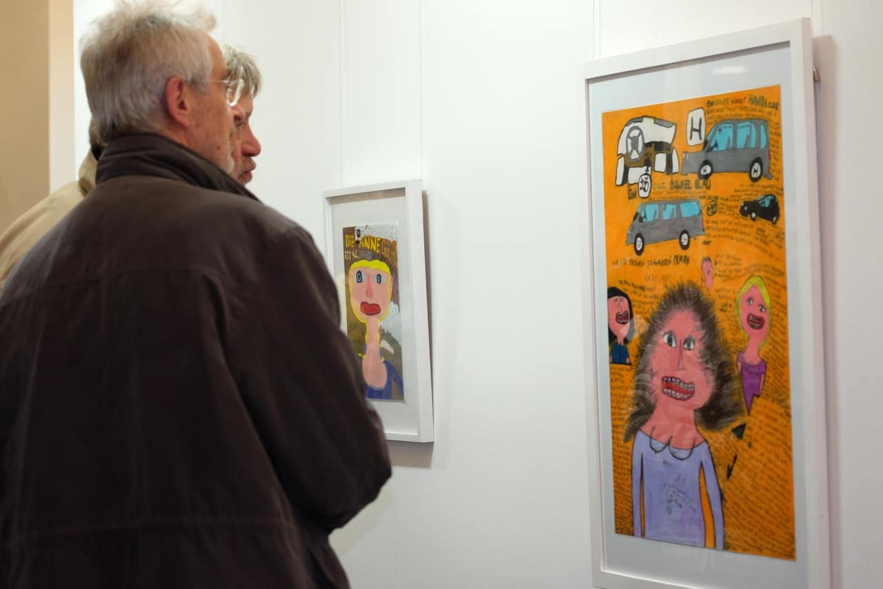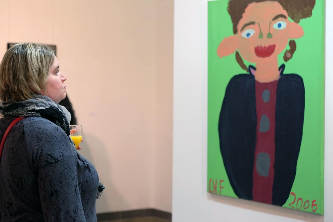 Der Betrachter fühlt sich beobachtet. Von überall blicken ihm Augen entgegen. Wütende Augen, gütige, fragende, böse, melancholische, hypnotisierende, große, kleine, bunte. Blicke, die festhalten, den Besucher verfolgen bei seinem Rundgang durch die Galerieräume. Ausgestellt ist die besondere Kunst von Menschen mit geistiger Beeinträchtigung. Sie wird international Outsider Art genannt.