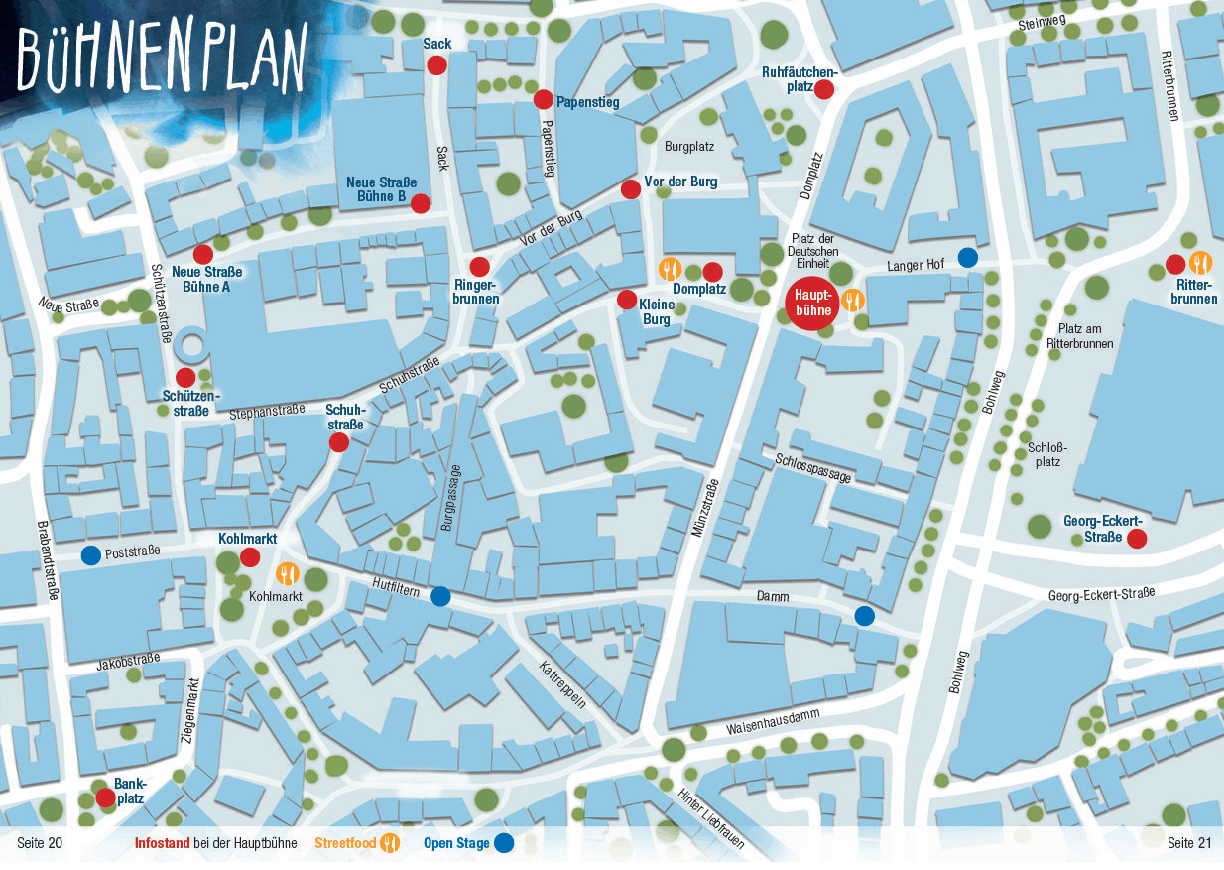 Bei strahlendem Sonnenschein und guter Musik wird ganz Braunschwreig zu einer riesigen Bühne, bleiben die Passanten begeistert stehen – das haben die ersten beiden Veranstaltungen eindrucksvoll bewiesen – und lassen sich die Zuhörer faszinieren von den nationalen und internationale Musikern, die an 15 Plätzen in der City, auf dem Kohlmarkt, dem Schlossplatz, dem Altstadtmarkt, auf dem Platz der Deutschen Einheit oder der Neuen Straße (Plan siehe unten) auftreten werden. Wenn der Funke vom Künstler zu seinem Publikum überspringt, dann entsteht diese so einzigartige Stimmung der Straßenmusik, die Braunschweig an diesen zwei Tagen beflügeln soll, beflügeln wird, denn Straßenmusik verströmt ihr ganz spezielles Flair.