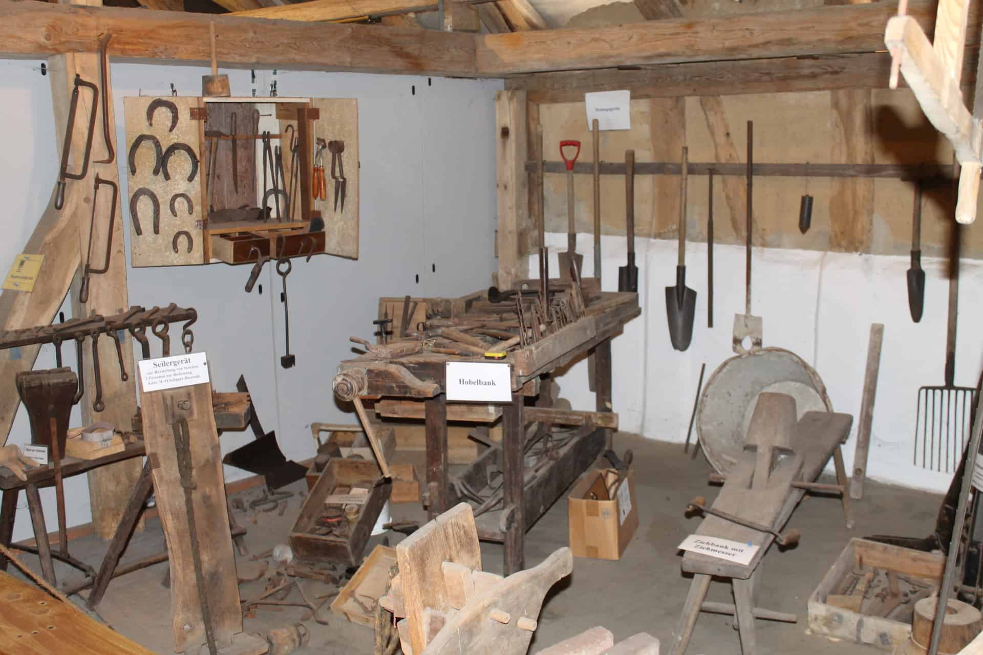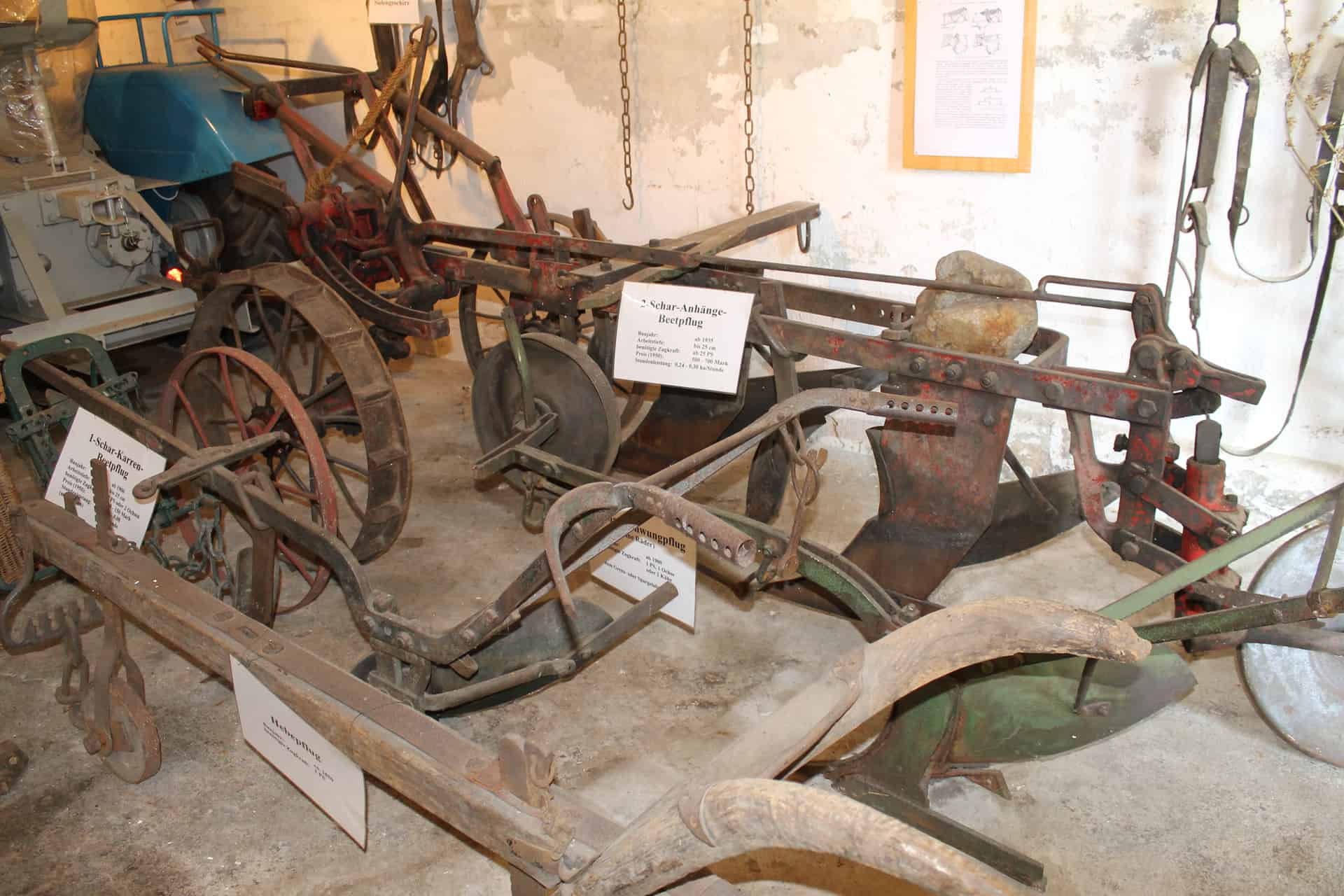 Sein Fachwerkhof, der seit 1663 in Familienbesitz ist, bildet dazu eine herrlich authentische Kulisse für so einen Ausflug ins Vergangene. Das älteste ausgestallte Gerät ist ein Hebepflug um 1850, das älteste präsentierte Exponat ist jedoch ein stattlicher Teil eines Mammut-Zahns, der bei der Feldarbeit gefunden wurde.