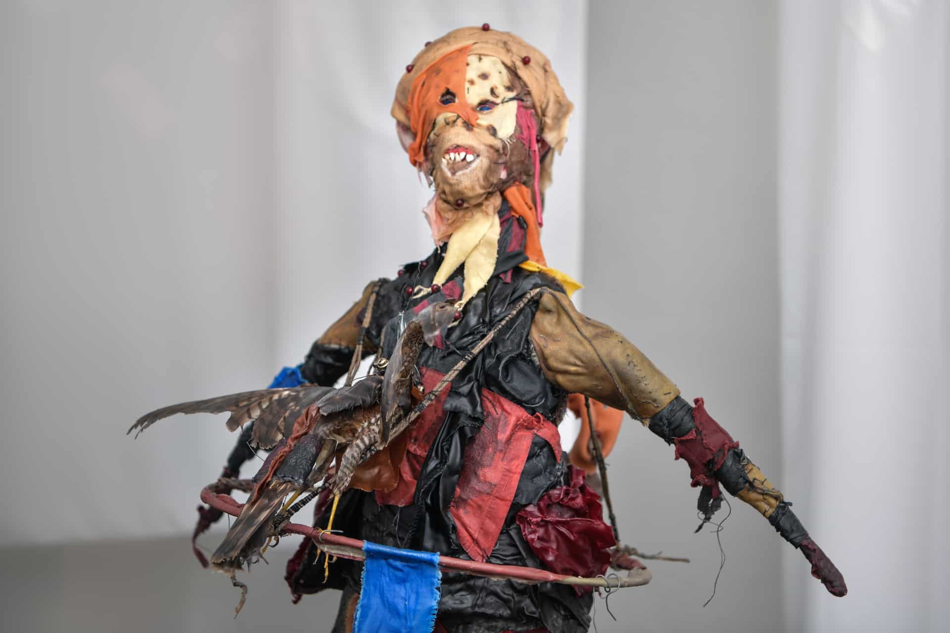 „Der Weiße Albino“ von Michael Nitsche stellt sich als ein Wesen dar, das nicht kulturell, nicht rassisch, nicht zeitlich zuzuordnen ist. „In der formalen Anlage der Figur sind die Vertikale und die Horizontale der Kreuzform wiederzufinden – Verweise auf die Polarität der Welt: das Männliche und das Weibliche. In seiner existenziellen, ruppigen Erscheinung fragt der Albino nach anderen Daseinsformen und ihren Verortungen in der Gesellschaft. Die Vögel, die er auf dem Reif bei sich trägt sind transkulturelle Symbole für die geistige Welt, für den freien Raum, in dem die Grenzen der Materie überwunden sind“, erläutert Nitsche seine Skulptur, der den geistig-intellektuellen Freiraum schätzt, „den mir mein Vaterland, die Bundesrepublik Deutschland, ermöglicht“.