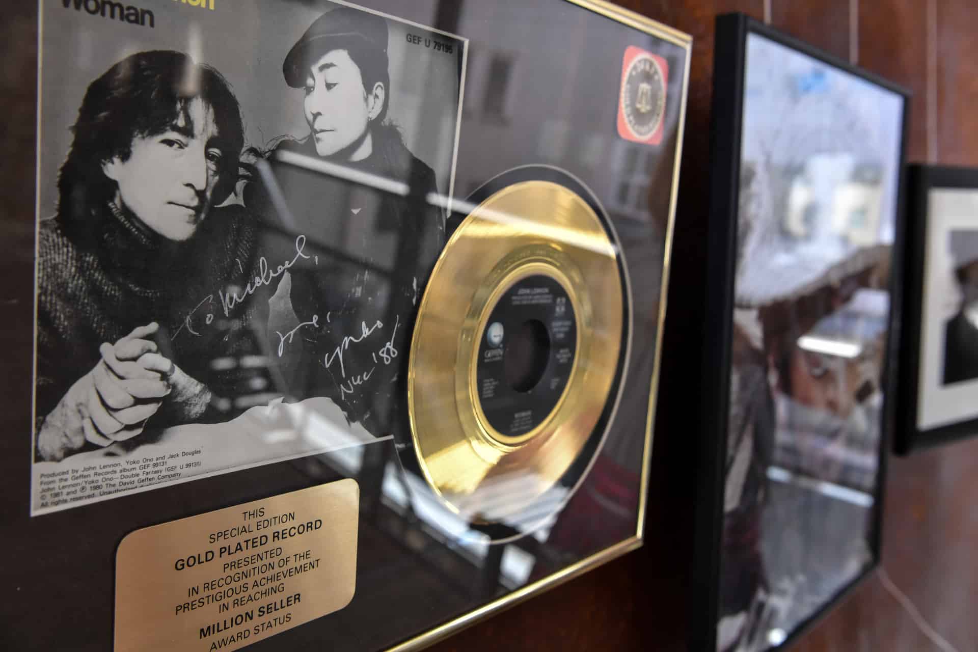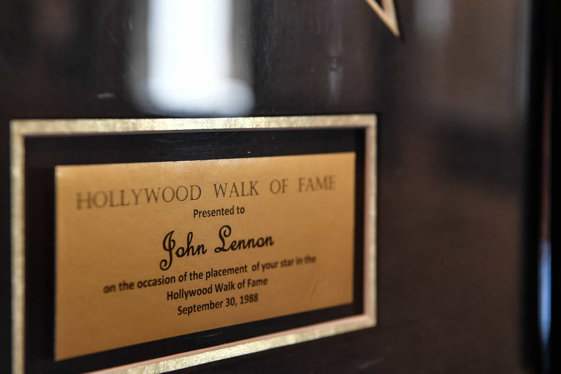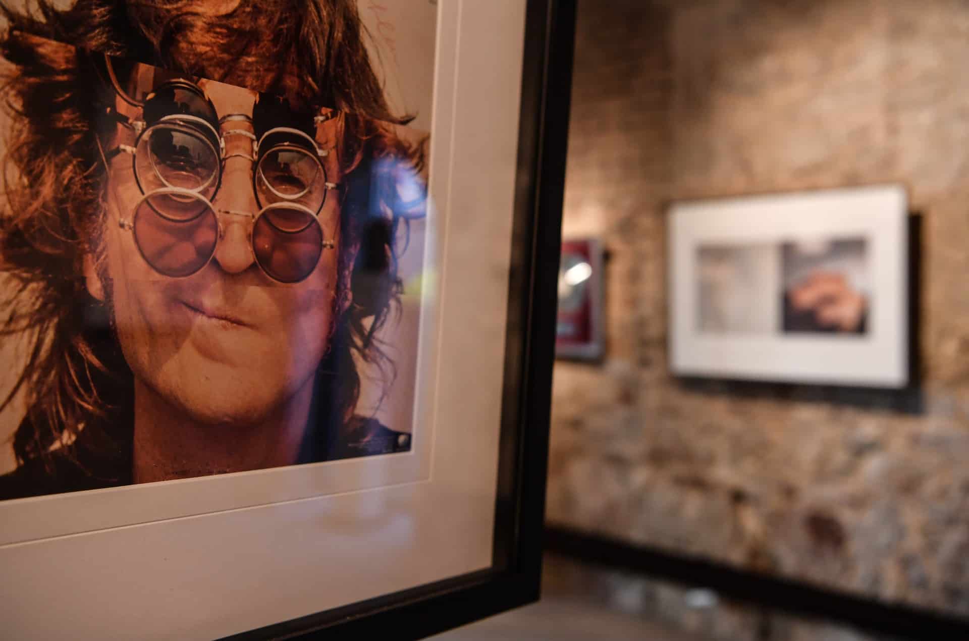 Es gibt frühe fotografische Portraits, die einen coolen jungen Mann zeigen, und Bilder von den Dreharbeiten zu dem Film „Wie ich den Krieg gewann“, bei dem John Lennon den Gefreiten Gripweed spielte. Für diese Rolle ließ er sich die Haare schneiden und trug erstmals eine Nickelbrille. In den Vitrinen findet sich Persönliches: Brillen, Halsschmuck, Auszeichnungen, eine Tasche von British Airways mit dem Aufdruck „The Beatles“. Auch signierte und veredelte Schallplatten gehören zur Ausstellung. Für Stifter Jochen Prüsse sind die Friedensaktivitäten Lennons von besonderer Bedeutung. „Mit den ‚War is over‘-Aktionen, die er 1969 mit seiner Frau Yoko startete, traf er direkt mein Herz und meinen Verstand“, sagt Prüsse. Dokumentiert werden diese Aktivitäten beispielsweise durch die Plakat-Aktion „War is over“.