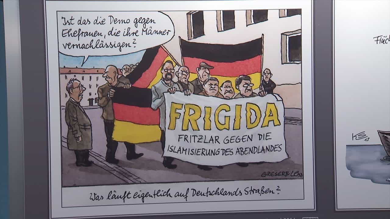 Die Braun­schwei­gi­sche Stiftung und Partner präsen­tieren die Karika­turen-Ausstel­lung „Oh, eine Dummel!“. In der Villa von Amsberg (Friedrich-Wilhelm-Platz 3)  werden mehr als 60 Zeich­nungen gezeigt, die sich mit Rechts­extre­mismus und Fremden­feind­lich­keit ausein­an­der­setzen. Die Ausstel­lung ist noch bis zum 29. Januar zu sehen. Der Eintritt ist frei. Zielgruppe sind vor allem Schul­klassen von der 9. Klasse an und Jugend­gruppen, aber eben nicht nur. Der Besuch lohnt sich für alle politisch Inter­es­sierten, egal welchen Alters. „Der Löwe“ hat für dieses Video eine 10. Klasse der Hoffmann-von-Fallers­leben-Schule während ihres Besuchs begleitet.